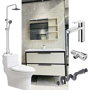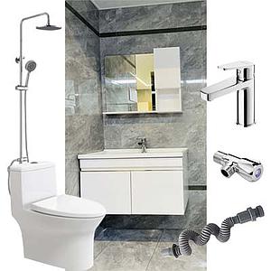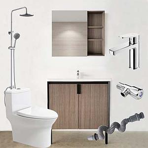 恒洁卫浴套餐三(坐便器75PT+浴室柜BC6052-080+龙头+花洒+角阀+排水管)